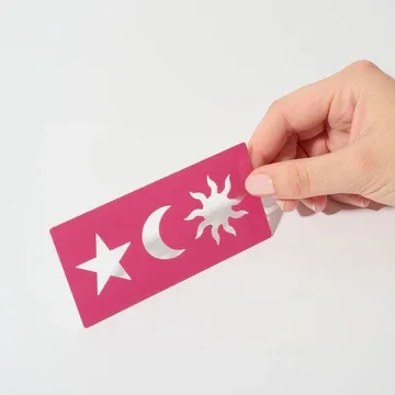Connecte-toi aux astres avec le pochoir cosmique ! Etoile, lune et soleil sont les formes idéales pour des tatouages pailletés qui illumineront tes festivals, anniversaires et soirées pailletées. Se réutilise à l’infini avec un peu de beurre de karité après trois utilisations ⭐️🌙☀️